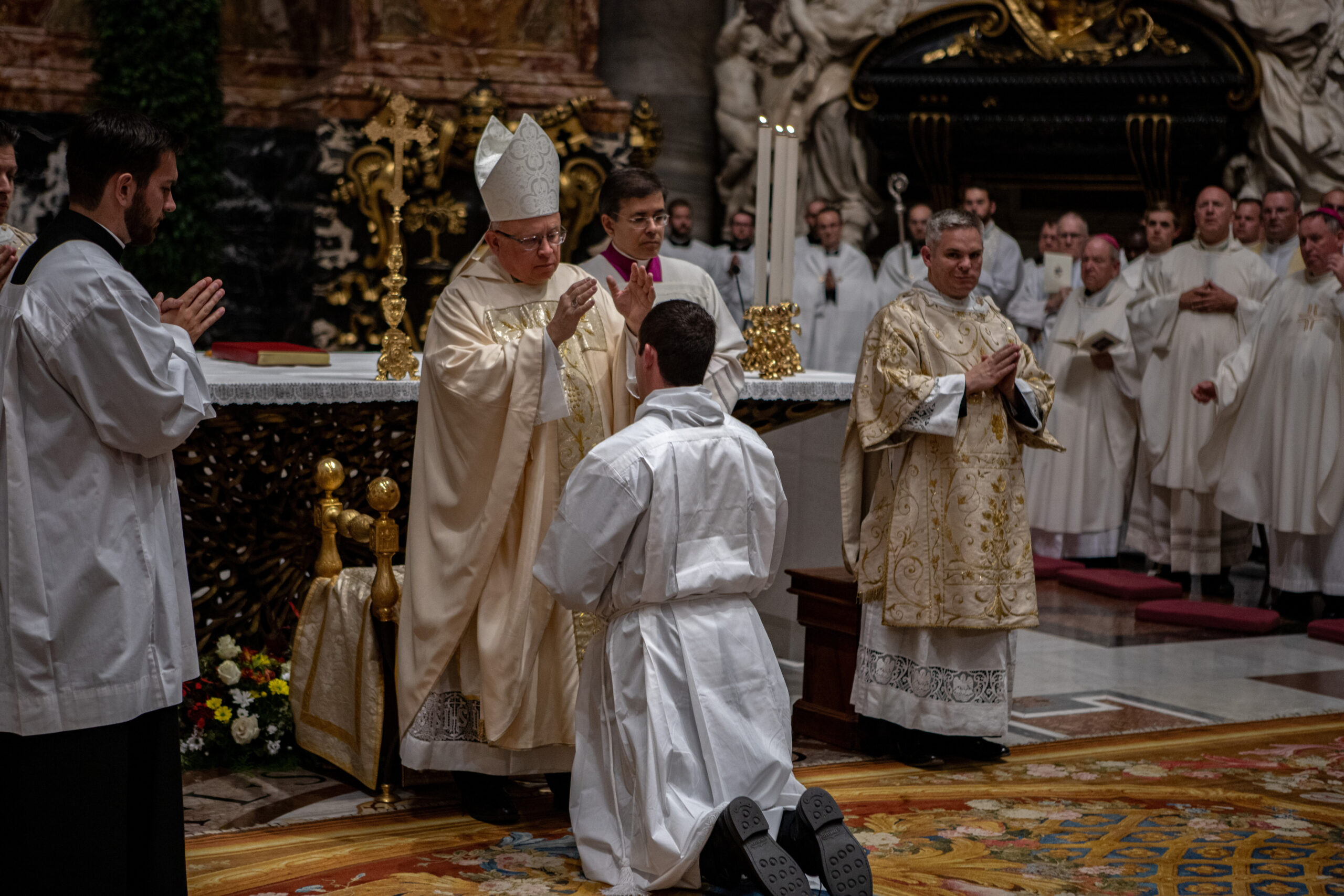 On October 2nd, Deacon Kaleb Mitchell was ordained to the transitional diaconate at St. Peter’s Basilica in Rome alongside 15 other seminarians from dioceses around the United States. The ordination marks the final major milestone in the discernment and formation for a seminarian studying or priesthood, with most transitional deacons serving in the role for no less than six months before being ordained a priest.