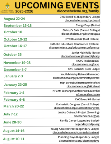 We warmly invite you and your family to take part in these opportunities for prayer, learning, fellowship, and fun. Your presence and participation enrich our diocesan community and strengthen the faith of all.